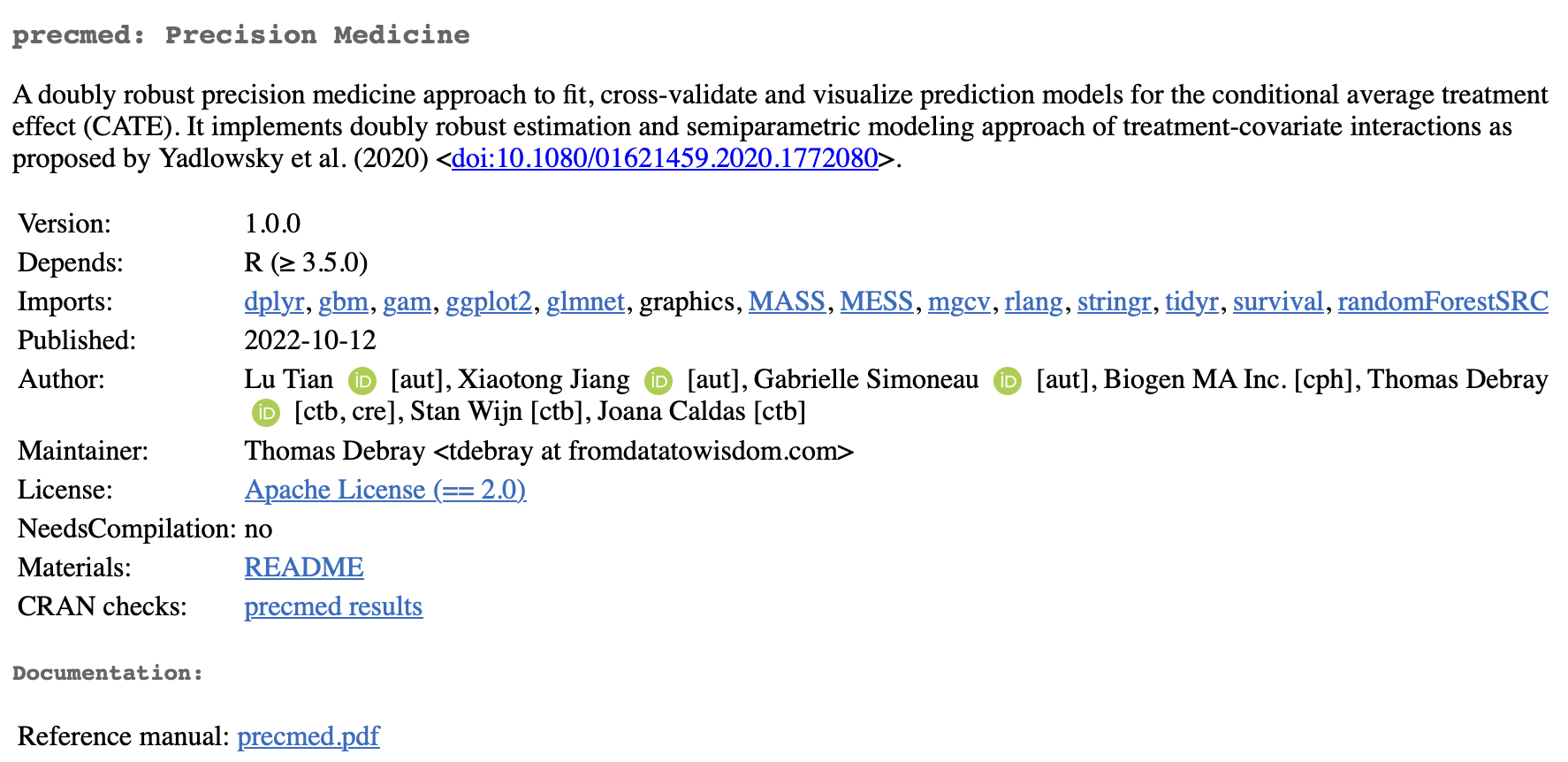 A doubly robust precision medicine approach to fit, cross-validate and visualize prediction models for the conditional average treatment effect. Available from GitHub and CRAN.